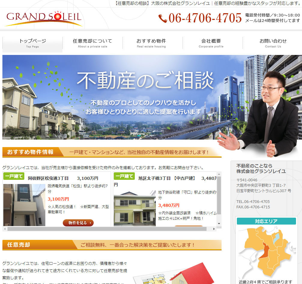 株式会社グランソレイユグランソレイユでは、住宅ローンの返済にお困りの方、債権者から様々な督促や通知が送られてきて途方にくれている方に対して任意売却を提案致します。