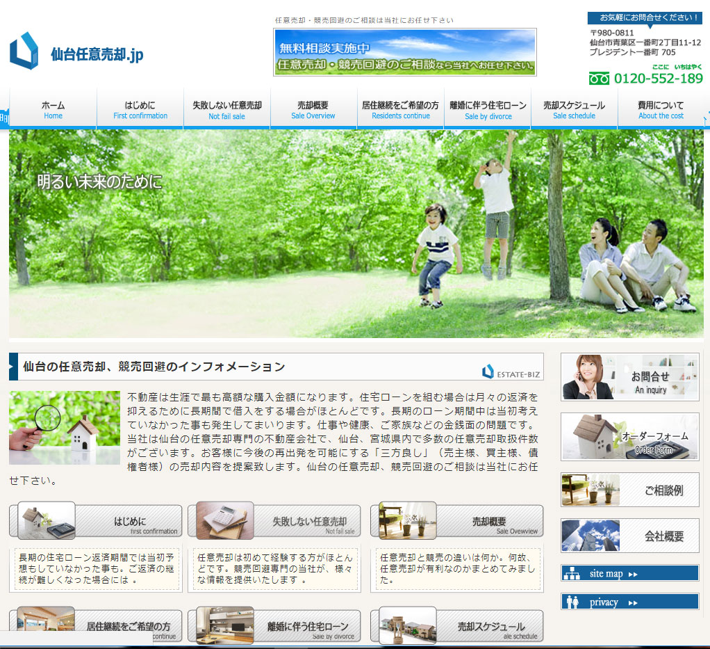 株式会社エステートビズ不動産は生涯で最も高額な購入金額になります。住宅ローンを組む場合は月々の返済を抑えるために長期間で借入をする場合がほとんどです。長期のローン期間中は当初考えていなかった事も発生してまいります。仕事や健康、ご家族などの金銭面の問題です。 当社は仙台の任意売却専門の不動産会社で、仙台、宮城県内で多数の任意売却取扱件数がございます。お客様に今後の再出発を可能にする「三方良し」(売主様、買主様、債権者様)の売却内容を提案致します。仙台の任意売却、競売回避のご相談は当社にお任せ下さい。