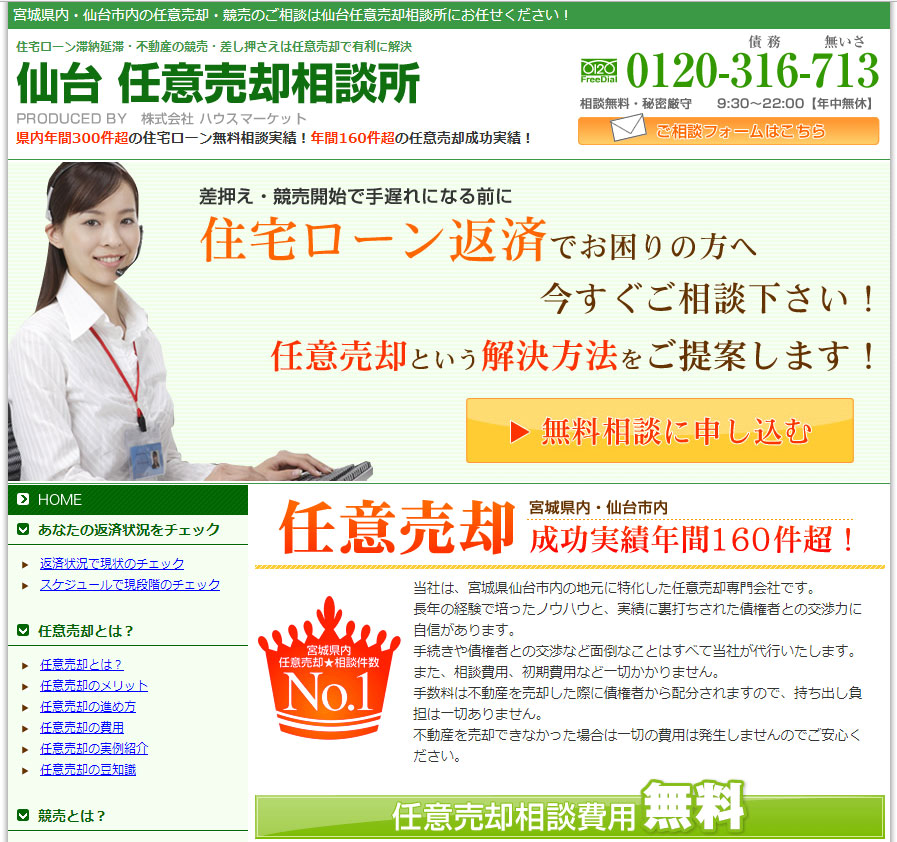 株式会社ハウスマーケット当社は、宮城県仙台市内の地元に特化した任意売却専門会社です。